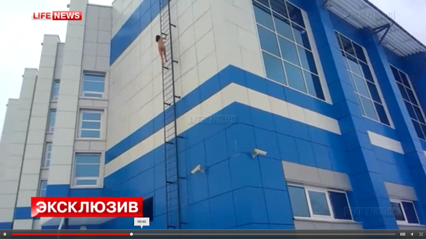 По пожарной лестнице обнаженная женщина взобралась на крышу бассейна и хотела оттуда спрыгнуть.