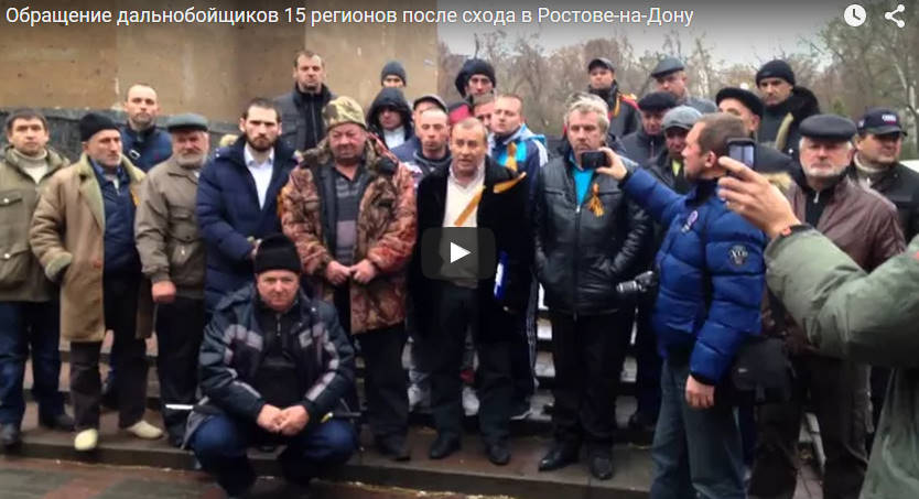 Дальнобойщики на сходе в Ростове-на-Дону приняли решение – 4-го декабря тяжелые грузовики выдвигаются на Москву. На этом сходе присутствовали чеченские представители, дагестанские, ростовские, черкасские, ставропольские, санкт-петербургские, тульские ,московские, московской области.