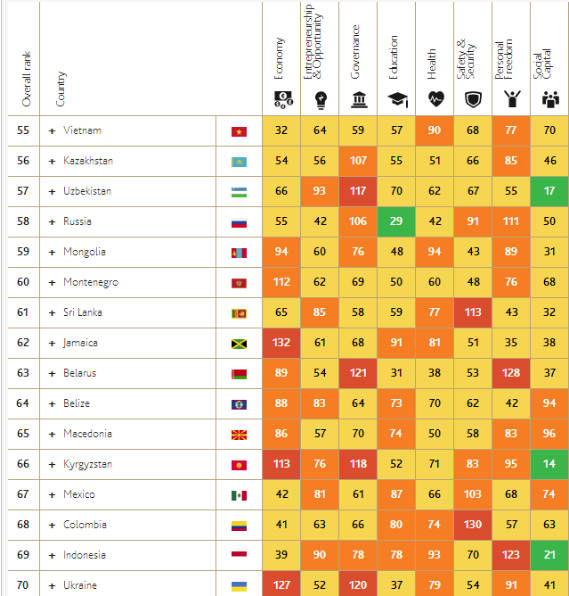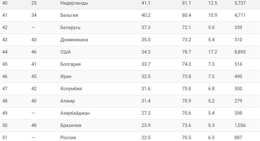 А находимся на 58 месте между Монголией и Узбекистаном: