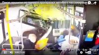 Кабина "лихача" оказалась в салоне общественного транспорта, в котором находились люди. В панике они начали выбегать из автобуса. О пострадавших не сообщается.