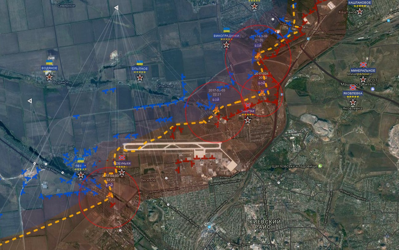 21:25 на линии фронта Аэропорт – Спартак – ЯБП после короткого перерыва снова бой.