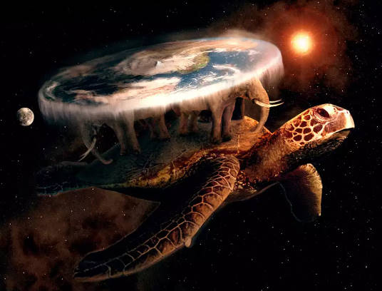 И вообще, если кто решит полететь в космос, тот ударится о небесную твердь и рухнет на землю, которая является диском на трех слонах стоящих на черепахе!