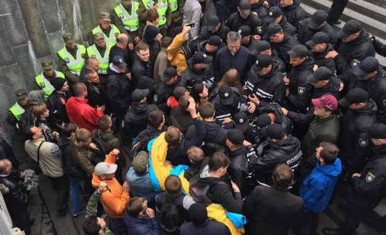 Офис неонацистов «ОУН»* в Киеве по-прежнему находится под контролем правоохранителей. «Патриоты» жалуются, что полицейские якобы «ломают двери».