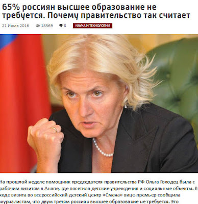 Вот вам и большинство! А вице-премьер правительства РФ заявила, что 65% граждан РФ, высшее образование вообще - не требуется!