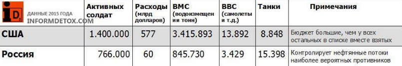 По этой табличке, единственное в чем мы превосходим США так это в размере территории. И то, необходимо учесть, что у нас 2/3 территогии находятся под Вечной Мерзлотой, то есть жить там нельзя.