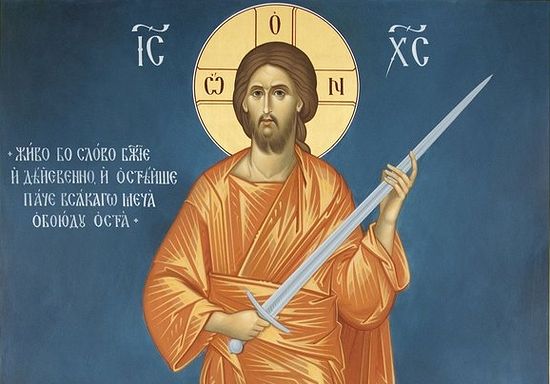Не думайте, что Я пришел принести мир на землю; не мир пришел Я принести, но меч (Мф 10:34) теперь, кто имеет мешок, тот возьми его, также и суму; а у кого нет, продай одежду свою и купи меч (Лк 22:36)