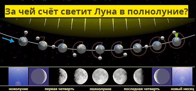 Посмотрите внимательно на полную Луну — это идеальный круг. А откуда должен падать свет, чтоб сфера отразилась идеальным кругом? Правильно, из-за нашей спины, но вот неувязочка: за нашей спиной никакого Солнца нет и быть не может. За нашей спиной Земля, а Солнце за Землёй. Кто-нибудь мне объяснит, чей, чёрт возьми свет отражает Луна в полнолуние?