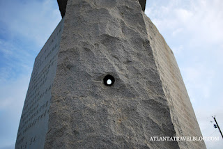 Невдалеке к западу, на земле расположена каменная табличка с надписью об истории его возникновения и назначения.Надпись состоит из десяти принципов (заповедей) и выгравирована на 8 современных языках, по одному языку на каждой стороне четырёх вертикальных плит. Если обходить сооружение по часовой стрелке с севера, то порядок языков таков: английский, испанский, суахили, хинди, иврит, арабский, китайский и русский.