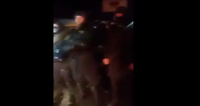 На видео видно, как полицейские автомобили и экипированные правоохранители собрались возле бойцов батальона «Донбасс».