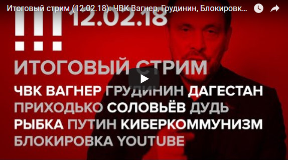 Максим Шевченко. Итоговый стрим (12.02.18): ЧВК Вагнер, Грудинин, Блокировка YouTube, Дагестан, Дудь, Рыбка, Путин(ВИДЕО)