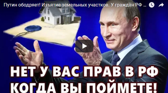 Путин ободряет! Изъятие земельных участков. У граждан РФ собственности "нету" ПОЙМИТЕ УЖЕ 2018(ВИДЕО)