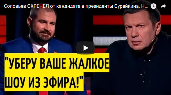 Соловьев ОХРЕНЕЛ от кандидата в президенты Сурайкина(ВИДЕО)